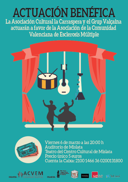 Gala benéfica en Mislata l próximo 6 de marzo a las 20h. tendrá lugar en el Auditorio de Mislata, Teatro del Centro Cultural de Mislata una gala benéfica de folklore valenciano a cargo de la Asociación Cultural «La Carraspera» y el Grup Valçaina. Los beneficios que se obtengan se donarán a nuestra asociación. ¡OS ANIMAMOS A QUE ACUDÁIS! Las entradas tienen […]